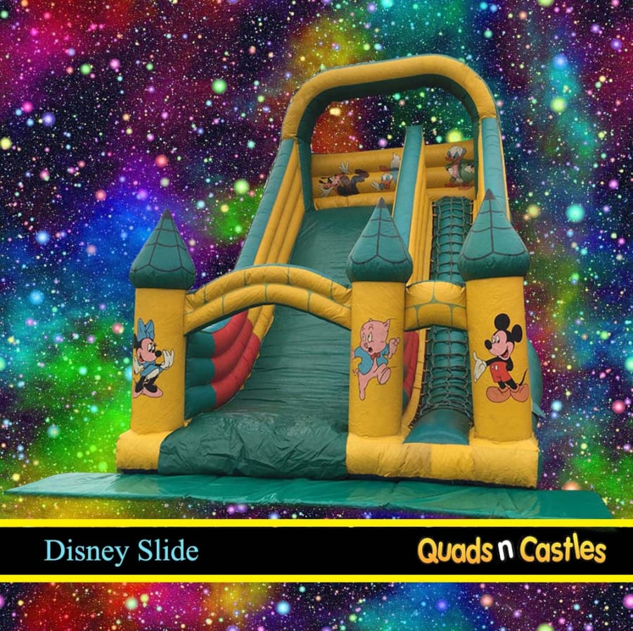 Our expert inflatable slide bouncy castle hire with Disney Slide in Kidderminster, Stourport on Severn, Bridgnorth, Shrewsbury, Ludlow, Highley ensures prompt delivery, setup, and collection, making your experience hassle-free. We prioritize safety and cleanliness, so your Disney Slide arrives spotless and ready for fun every time. 🏰