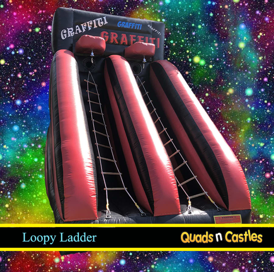 Using only your feet and hands (NO KNEES) you have to balance whilst trying to climb the ladder to ring the bell whilst the ladder is swaying and rolling.