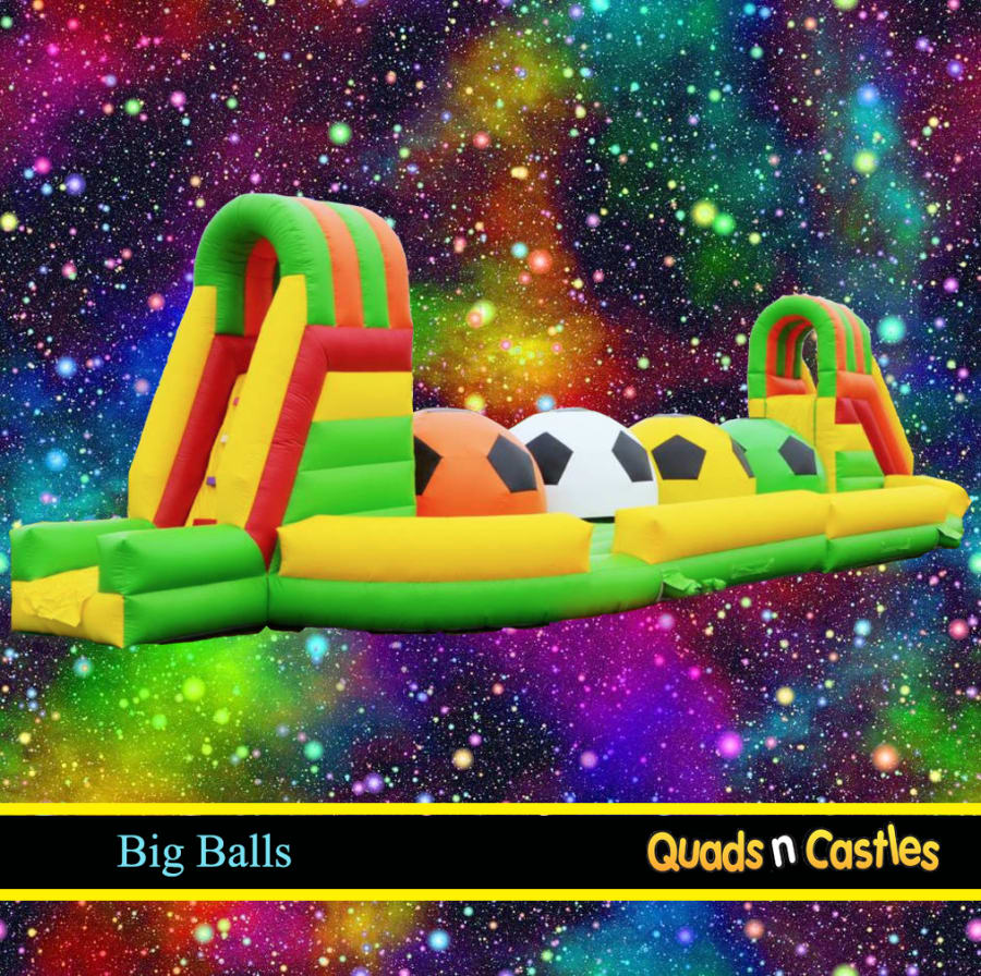 Users climb up the steps into the tower and jump onto the 6 feet high balls as fast as possible! Crossing all 4 balls into the tower the other end and down the slide!